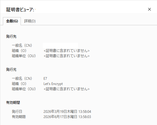 実際にブラウザでアクセスしてみて、証明書が有効になっているか確認します。