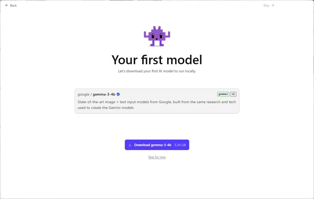 進めると導入するモデルを聞いてきますが、目的のモデルでなければスキップで問題ありません。
