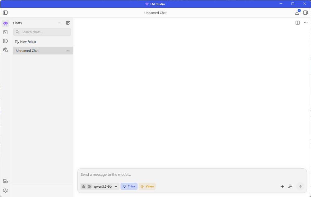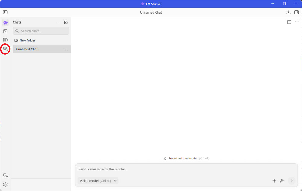 ダウンロードが完了すると、使えるようになるので「Use in New Chat」でモデルを使えるようにします。