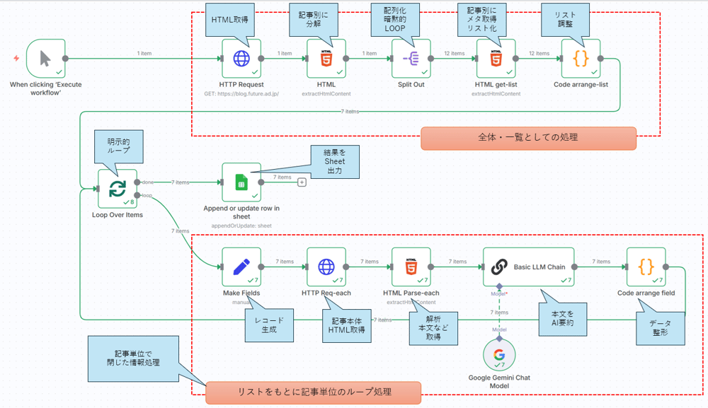 ここまでの「設計」を n8nの要素に簡単に当てはめてみると以下のようになります。