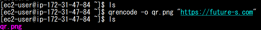 このコマンドを実行すると、カレントディレクトリに `qr.png` というファイルが作成されます。