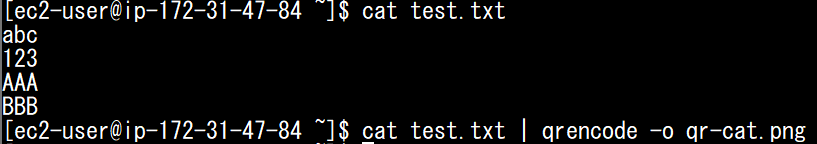 次に、以下のコマンドのようにパイプで繋いでQRコード化します。