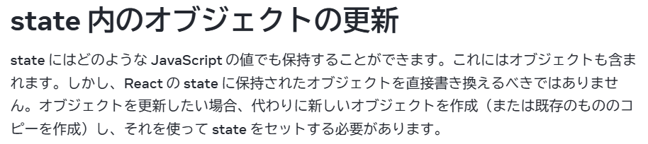 このとき、どんな動作不具合があったかはっきり覚えてはいないのですが、stateに直接的に変更を行うと、データは消えているのに画面が更新されなかったり、何回目かの操作で動作がおかしくなったりが頻出するようです。