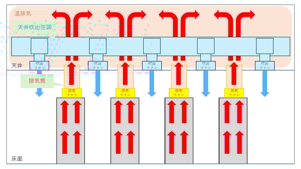 最後が天井吹き出し空調ではなく壁吹出し空調に排気筒を組み合わせた方式。